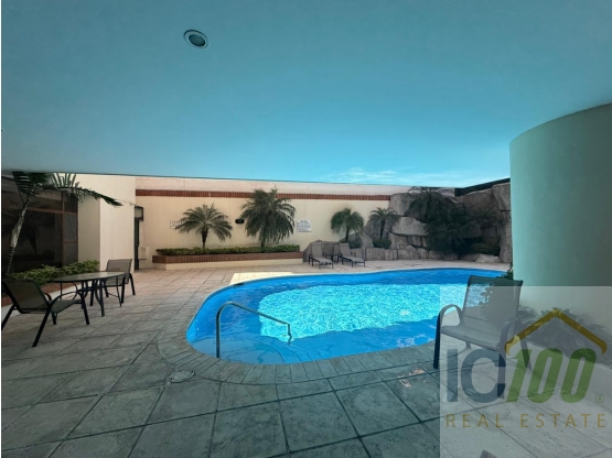 El edificio cuenta con parqueo de visitas, lobby, gimnasio, piscina grande y pequeña y salón social.