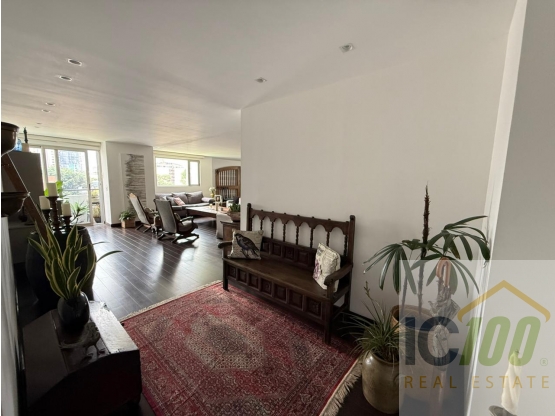 El apartamento es de 270 m2 con recibidor, sala con balcón, comedor, cocina con pantry, lavandería, despensa y habitación de servicio. Luego encontramos un bar y un estudio cerrado. Al abril la puerta que divide el área social de la familiar, encontramos la sala familiar y los 4 dormitorios (2 de ellas con baño privado y las otras dos comparten baño. El dormitorio principal cuenta con walking closet y balcón.