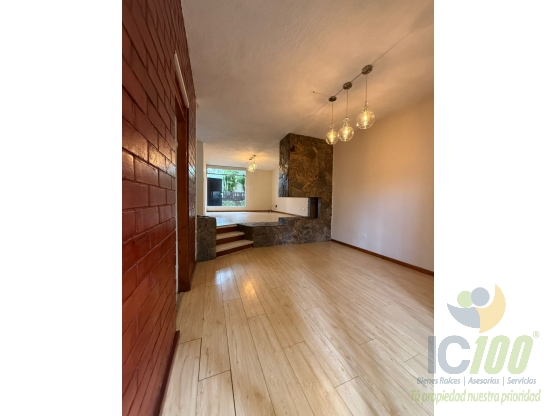 La casa es de 2 niveles con 3 habitaciones, la principal con baño propio, las otras dos comparten un baño, sala familiar, baño de visitas, sala principal, comedor, cocina, lavandería, jardín con pérgola y habitación de servicio.  Garage para dos carros dentro del portón y otros dos afuera.