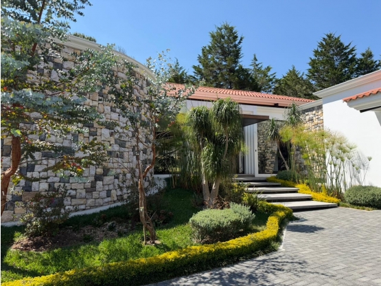 La casa cuenta con 4 habitaciones con baño y closet cada una, 2 salas con chimenea, estudio, baño visitas completo, comedor, pantry, cocina con amplia despensa, área de lavanderia, cuarto de servicio con baño completo, bodega o cuarto para seguridad con baño.