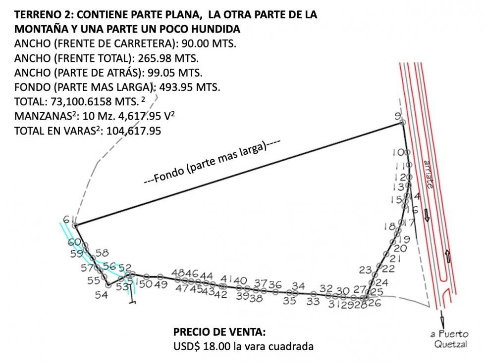 El terreno es de 104,617.95 Varas2 y está en sentido de la capital hacia el puerto.